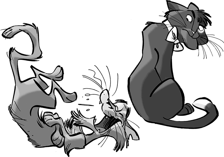 Ещё чуть-чуть – и забияки снова вцепились бы друг в друга, но тут Жозефина подпрыгнула и оказалась между драчунами. Коты так и замерли под гипнотическим взглядом сиамской кошки:
