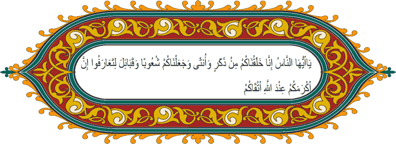 «О люди! Воистину, Мы создали вас из мужчины и женщины и сделали вас народами и племенами, чтобы вы узнавали друг друга, и самый почитаемый перед Аллахом среди вас – наиболее богобоязненный»[7].