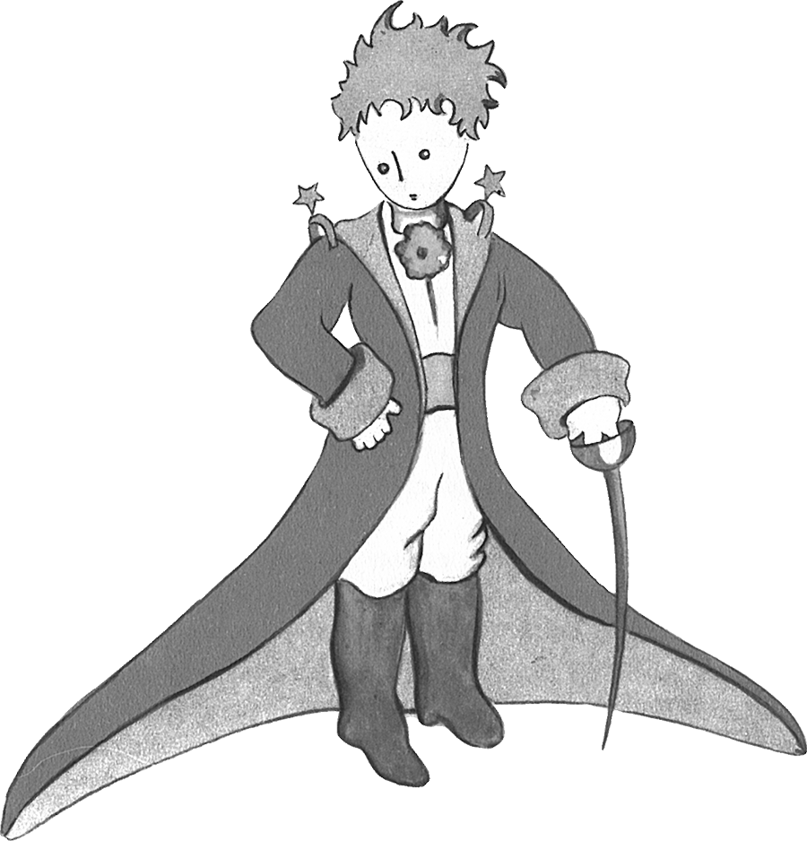 Я живо вскочил на ноги, словно ужаленный. Старательно протер глаза – и буквально оторопел: передо мной стоял симпатичный паренек совершенно необычайной наружности, смотря на меня очень строго. Вот его лучший портрет, который мне немного позже удалось нарисовать. Только, конечно, мой рисунок не в силах в полной мере передать его очарование. И в этом нет моей вины. Ведь я отказался от карьеры художника еще в шестилетнем возрасте – и всё из-за взрослых. Я так и не научился рисовать ничего, кроме удавов, снаружи и изнутри.
