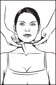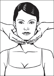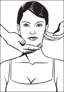 1. Расположите руки по обе стороны лица у основания шеи; затем выполните медленные поглаживания вверх, по направлению ко лбу.