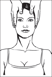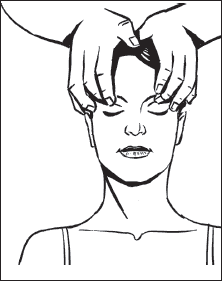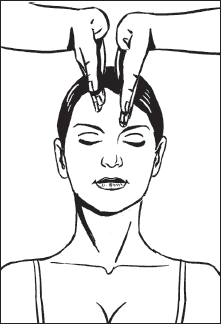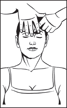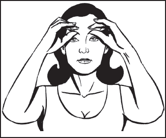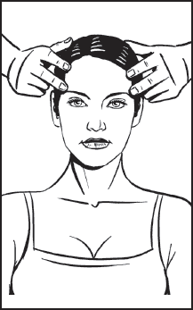 3. Расположите на середине лба большие пальцы, затем медленно двигайте их по направлению к вискам.