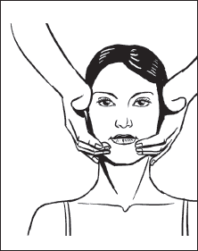 После этого нежными движениями двигайте пальцы (то сближая их, то отдаляя) на обеих участках нижней части вашего лица.