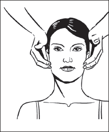 7. Найдите на лице с обеих сторон жевательные мышцы и постарайтесь расслабить их, выполняя вокруг них круговые движения подушечками пальцев.