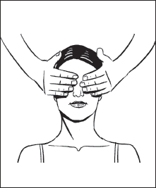 1. Нежно положите на лицо обе ладони так, как показано на рисунке. Вы сразу испытаете приятные, успокаивающие ощущения.