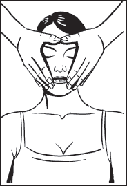 Расположив теплые ладони на напряженных участках лица и задержавшись в этом положении на некоторое время, вы почувствуете, как расслабляются под воздействием тепла все зажатые области. Продолжайте манипуляции до полного исчезновения напряжения.