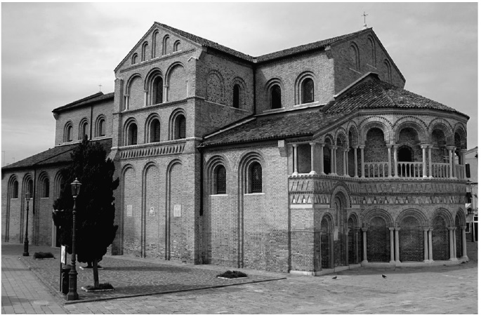 Третьим прекрасным представителем сакральной архитектуры того периода является церковь Санти-Мария-э-Донато на острове Мурано. Как и церкви Торчелло, она вероятно, была основана в VII в. Уже в 999 г. она упоминается как храм, посвященной Богородице. Посвящение св. Донату было добавлено в 1125 г., когда мощи святого были доставлены на Мурано с греческого острова Кефалония. Великолепные мозаики на полу датированы 1140 г., когда сооружение, должно быть, было в значительной степени завершено.