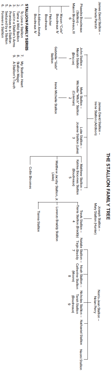 Nicholas had met his Texas cousins as an adult, the two limbs of their family tree discovering each other after the sudden death of his mother, Norris Jean Stallion. Norris Jean had been estranged from her family, leaving behind her parents and two younger brothers to follow a man who took her for granted. Nicholas and his siblings had grown up in Utah, never knowing the family left behind in Texas. Some claimed it was Stallion magic that had reconnected them, and now the two branches of the Stallion tree and their extended Boudreaux family in-laws were as thick as thieves.