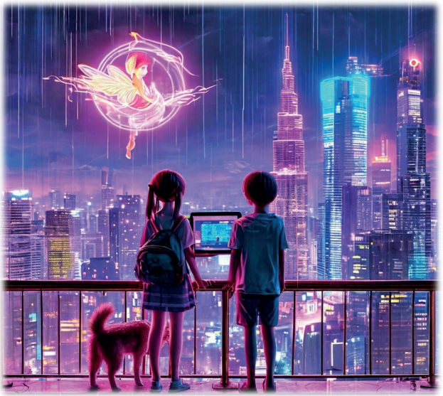 Фея Алиса появилась в воздухе перед ребятами. Её крылья, некогда голографические, теперь напоминали порванный экран.