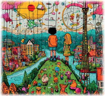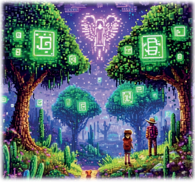 Они очутились в лесу Пиксельных Снов, где деревья состояли из зелёных квадратов, а вместо птиц летали эмодзи. Воздух пах жвачкой и пластиком.