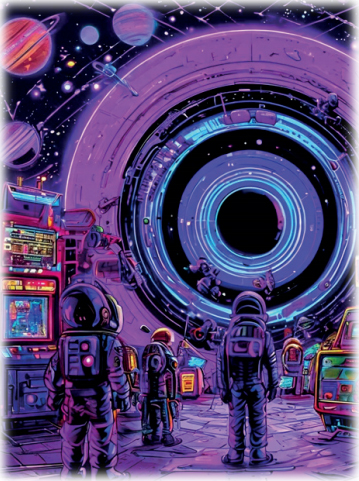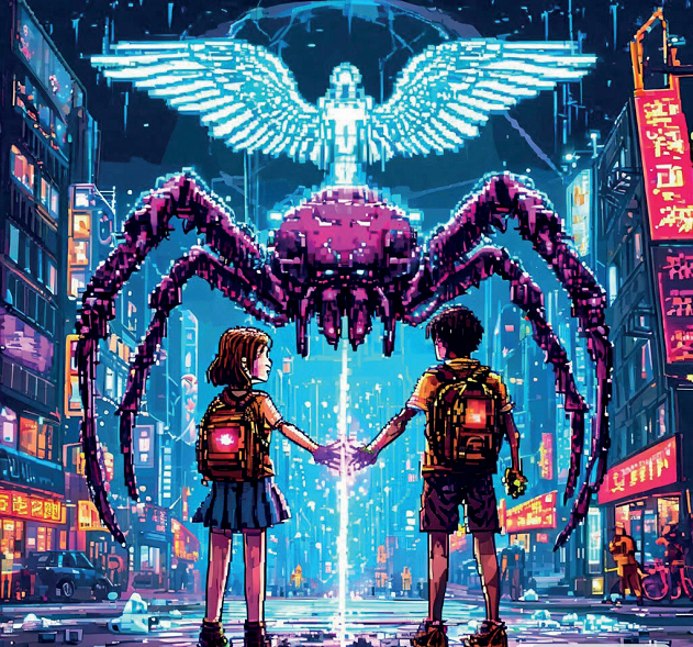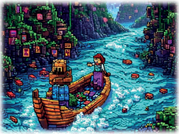 Лодка, собранная из кусочков пикселей, покачивалась на воде. На носу светилось: *«Continue? ^ Yes / No»*. Женя ткнула в «Yes», и они поплыли к Горам Экшена, где уже дымились вулканы из чипсов.