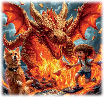 Саша и Женя, управляя персонажами, перепрыгивали через лаву из горящих клавиш. Элли, нюхая код, нашла секретный портал – оказалось, дракон был заражён вирусом. Вылечив его «антивирусным зельем» (смесь имбирного чая и кода), дети получили кристалл.