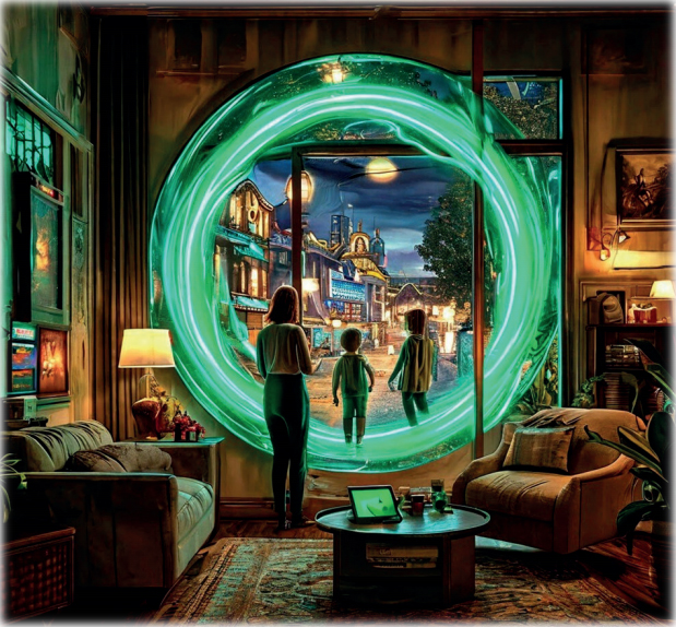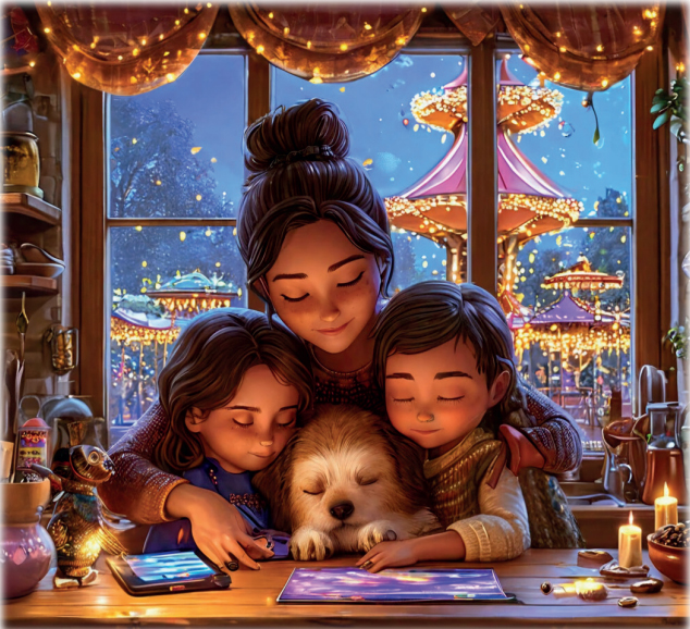 Спираль на экране вдруг начала мерцать и закручиваться, свет становился все ярче, а вращение все быстрее. Дети как завороженные не могли оторвать глаз от планшета. Когда экран погас, на балконе никого не было. Только три силуэта, Жени, Саши и собаки Элли растворялись в гаснущем экране планшета.
