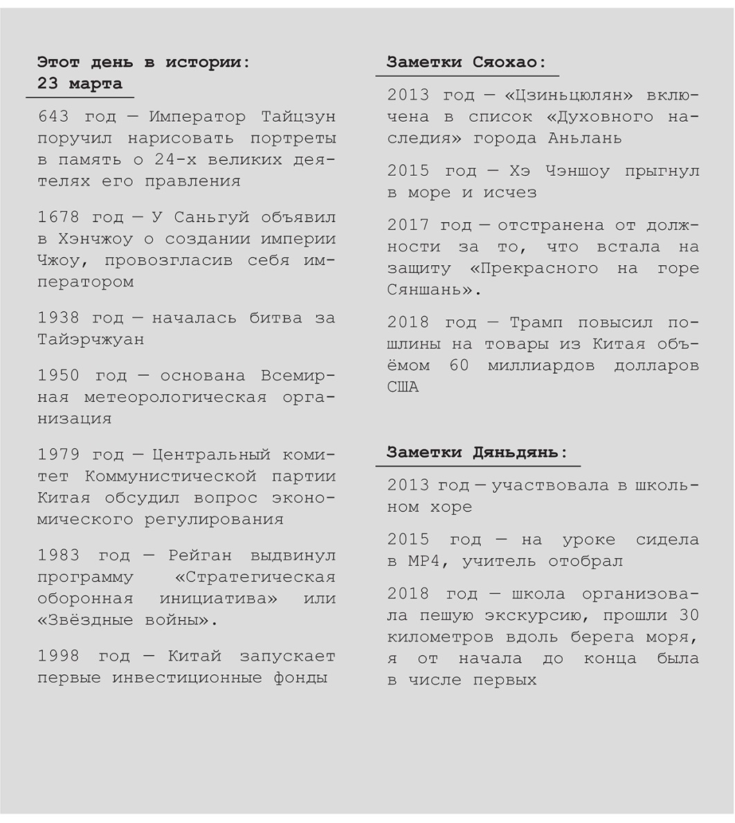 Приближался 12‑й лунный месяц. У Сяохао позвала Го Мо к себе в кабинет, и они вместе обсуждали подготовку к «Новогоднему гала‑концерту в Цзепо» перед Праздником весны, говорили о том, как отметить окончание 18‑го съезда КПК и как встретить Год Змеи.
