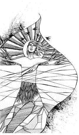 Уявімо собі людину, яка намагається видобутися на гору, і посеред шляху починає втрачати рівновагу. Їй все одно – чи підніматися далі, чи повернутися, бо що позаду, що попереду відстань однакова. Але їй тремтять ноги без твердого опертя, а рукам нема за що вхопитися. Ані стати, ані піднятися. Людина розіпнута в просторі – ногами на землі, а руками в небі – в облудній рівновазі міжпростор’я.