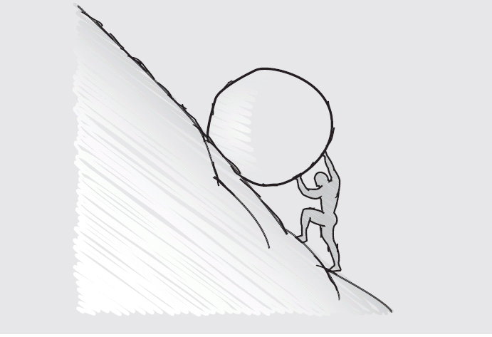We used the term “Sisyphean” as a tribute to the mythical king Sisyphus, who was punished by the gods for his avarice and trickery. Besides murdering travelers and guests, seducing his niece, and usurping his brother’s throne, Sisyphus also tricked the gods.
