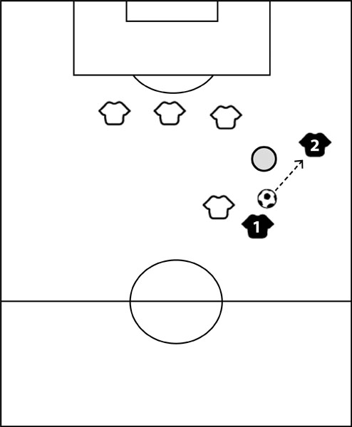 Тренеру на заметку: Отличным способом отработки такого паса является тренировочное упражнение на контроль мяча трое против одного, так как игроки часто будут оказываться в ситуации, когда пространство для паса ограничено.