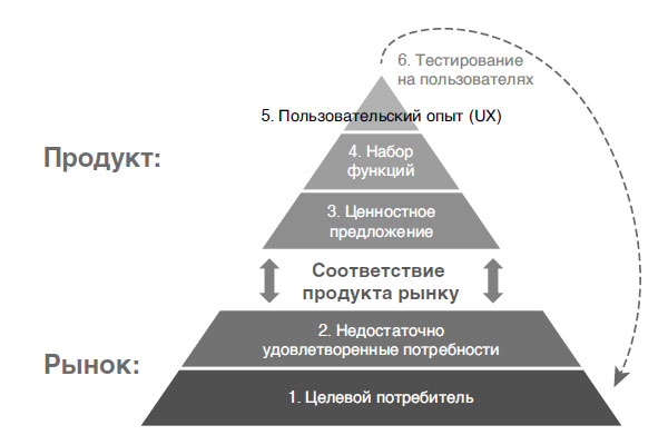 Такой подход поможет вам сформулировать и проверить ваши ключевые гипотезы по каждому из пяти компонентов соответствия продукта рынку.