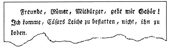Прежде чем читать дальше, попробуйте на них ответить. Вероятно, вы сможете догадаться, даже если не умеете читать немецкий готический шрифт – и даже если не знаете немецкого! Посмотрите еще раз повнимательней. Видите? Впечатляющий трюк! Пусть у Нойгебауера был его столбец G, но ведь и вы быстро определили, не правда ли, что этот фрагмент – часть перевода на немецкий нескольких строк из елизаветинской трагедии (а точнее, из «Юлия Цезаря»: акт III, сцена 2, 79–80)? Стоит только задуматься, и вы поймете, что двух мнений тут быть не может! Шансы на то, что именно эта последовательность букв немецкого алфавита будет выстроена в каких-либо иных обстоятельствах, Чрезвычайно малы. Почему? Что конкретно отличает этот набор символов от любого другого?