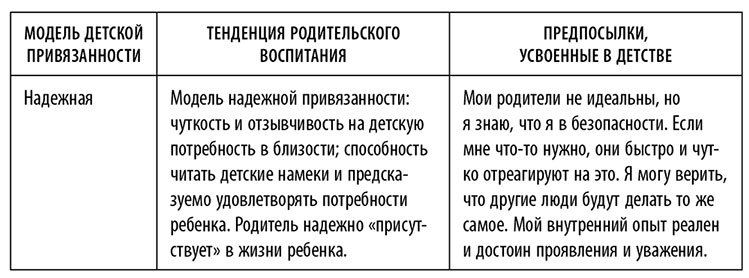 Некоторым детям выпадает удача стать взрослыми людьми, которые имеют в целом нормальные отношения с окружающими, пользуются уважением сверстников, реализуют свой интеллектуальный потенциал и хорошо владеют собственными чувствами. Исследователи назвали такой зрелый вариант надежной привязанности свободной привязанностью. Благодаря регулярным проявлениям любви и внимания, которые они получали в детстве, эти люди стали взрослыми, обладающими непринужденной самостоятельностью, которым ничто не мешает осмысливать и понимать свое прошлое, быть самими собой в настоящем и свободно следовать своим мечтам и устремлениям в будущем. В этом случае они прекрасно адаптировались к взрослой жизни, научились управлять своими эмоциями, мышлением, решениями и поступками ради взаимовыгодных межличностных отношений. Научные выводы очевидны: мы развиваем эмоциональный и социальный интеллект в зависимости от надежности нашей привязанности.