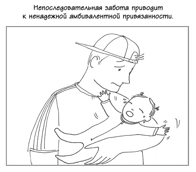 Непоследовательная забота приводит к ненадежной амбивалентной привязанности.