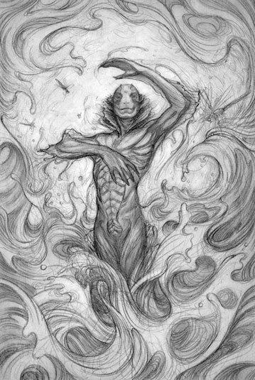 То, как существо скользит в глубине, словно танцор, его скрытая на дне пещера, как оно ждет там Стрикланда, как оно не сражается за свою свободу, как обезьяньи крики разносятся под водой, и как еще до того, как Стрикланд нацеливает гарпун, существо тянется к нему…