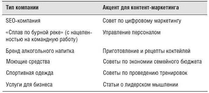 Таблица 2.2. Идеи тем для контент-маркетинга