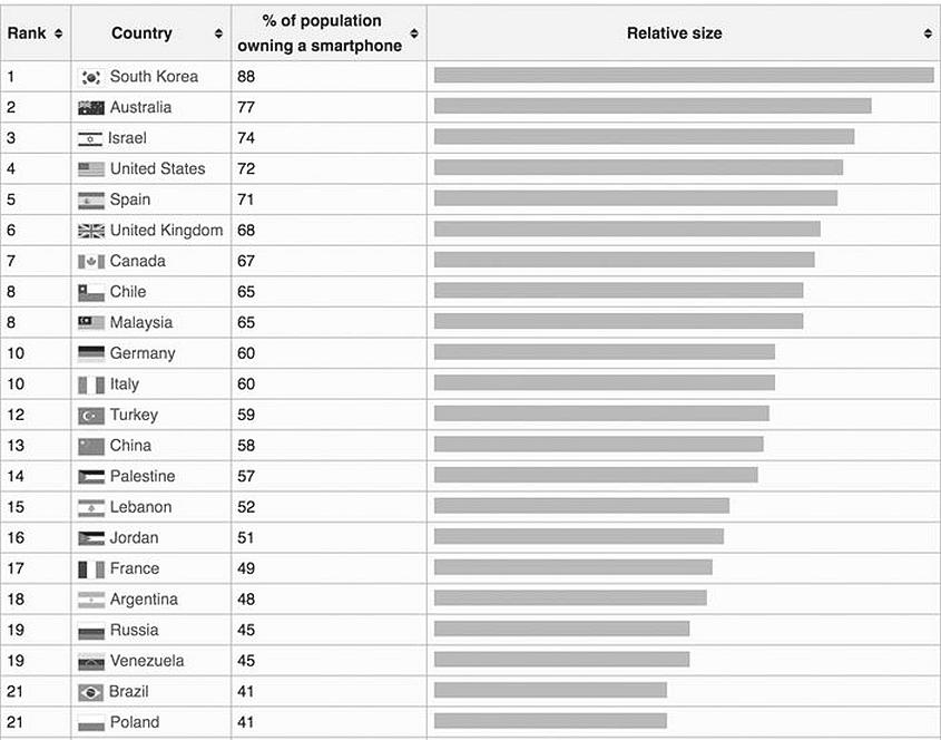 Рисунок 3.3. Страны с самым высоким уровнем распространения смартфонов