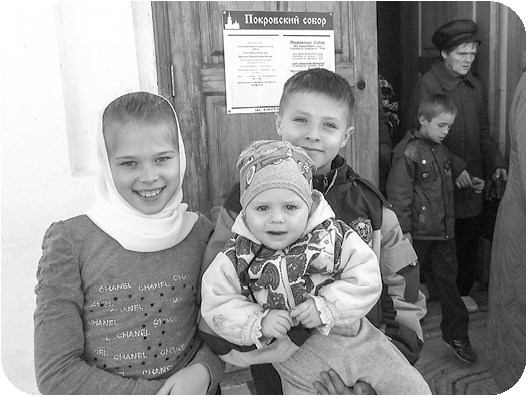 Вероника с одноклассником Максимом и его братом Ярославом (храм Покрова в Камышлове, 2013 г.)