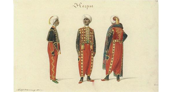 Арапы считались привилегированной частью служителей двора. В начале XX века годовое жалованье старшего араба составляло 800 рублей, младшего – 600 рублей. А в 1857 году Александр II утвердил тот самый, что мы видим на картине, внешний вид форменной одежды придворнослужителей, который сохранился до начала XX века почти без изменений. Парадный костюм арапов состоял из 16 элементов, его стоимость в начале XX века составляла 500 рублей (для сравнения, обычный мужской костюм в Санкт-Петербурге стоил 6 рублей, а парадный мундир камер-фурьера и камер-казака стоили 408 и 418 рублей соответственно). Автором же эскизов арапской формы был знаменитый художник А. И. Шарлемань (одну из работ которого практически все вы храните у себя дома и очень хорошо знаете :) Но об этом я расскажу в одном из своих следующих постов).
