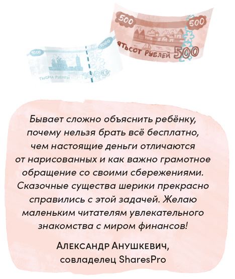 Я решил восполнить этот пробел и рассказать маленьким читателям о деньгах. Вместе с добрыми сказочными героями шериками дети узнают, что такое деньги, как они появились и для чего нужны.