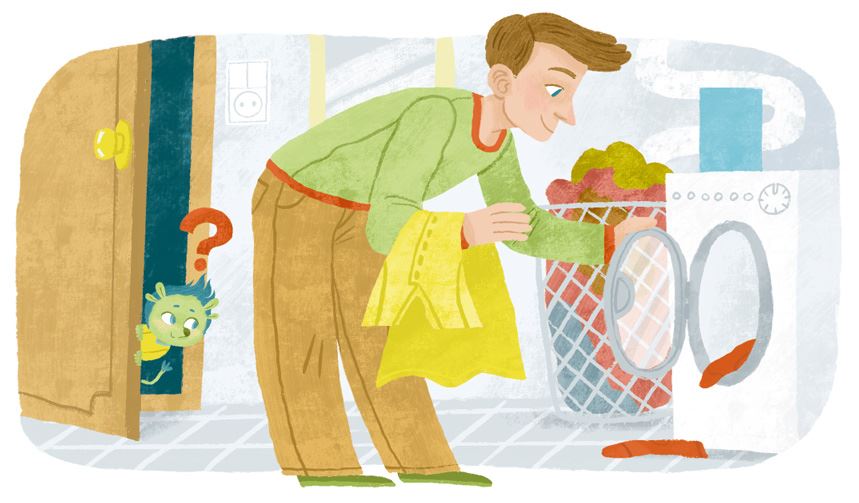 Многое из того, что происходит в жизни людей, было непонятно Спо. Но каждый раз он приходил к родителям, чтобы они ему объяснили. Так он узнал, куда каждый день уходят Бумажкины (шерикам не нужно ходить на работу, поэтому для них это необычно). Или, например, недавно мама рассказывала Спо, зачем по выходным Бумажкины загружают все вещи в какую-то большую белую машину в ванной комнате, которая громко жужжит и возвращает одежду влажной (сами шерики никогда не пользуются стиральной машиной, потому что стирают лапками).