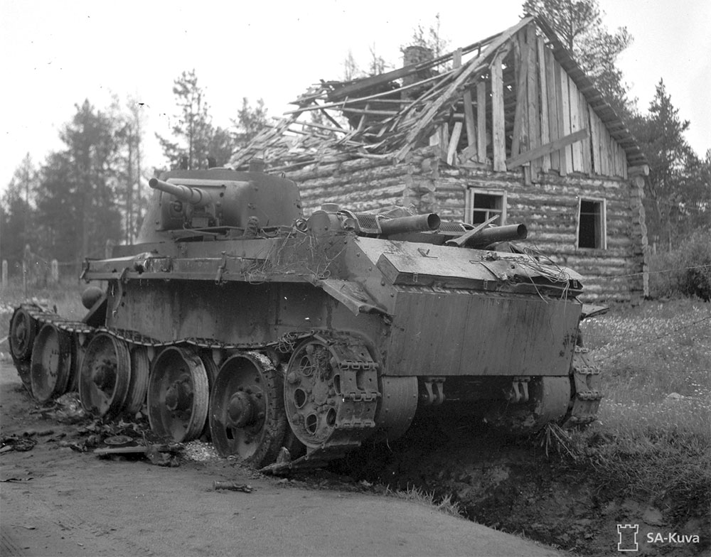 Сгоревший легкий танк БТ-7 из 1-й Краснознаменной танковой дивизии. Район Саллы (фото CA-Kuva).