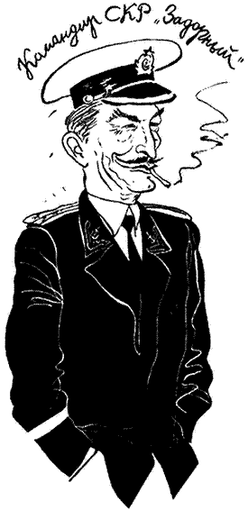 От волнения я тут же перепутал капитана с командиром и понял, что полностью облажался. Командиром СКР «Задорный» оказался худой, как охотничья собака, сорокалетний капраз (капитан первого ранга), с тончайшими усами а-ля Эркюль Пуаро и следами легкого алкогольного поражения печени на лице. По тому, как он посмотрел на меня, я понял, что так к нему не обращались давно.