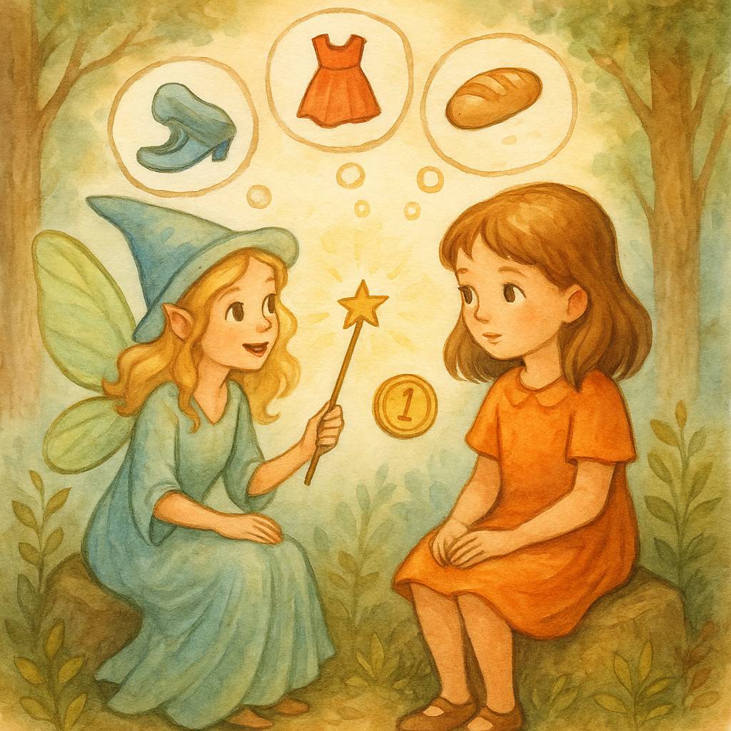 Фея улыбнулась и исчезла в облачке золотой пыльцы. А Поля вздохнула – но не с грустью. Она аккуратно сложила свои монетки обратно в мешочек и прошептала:
