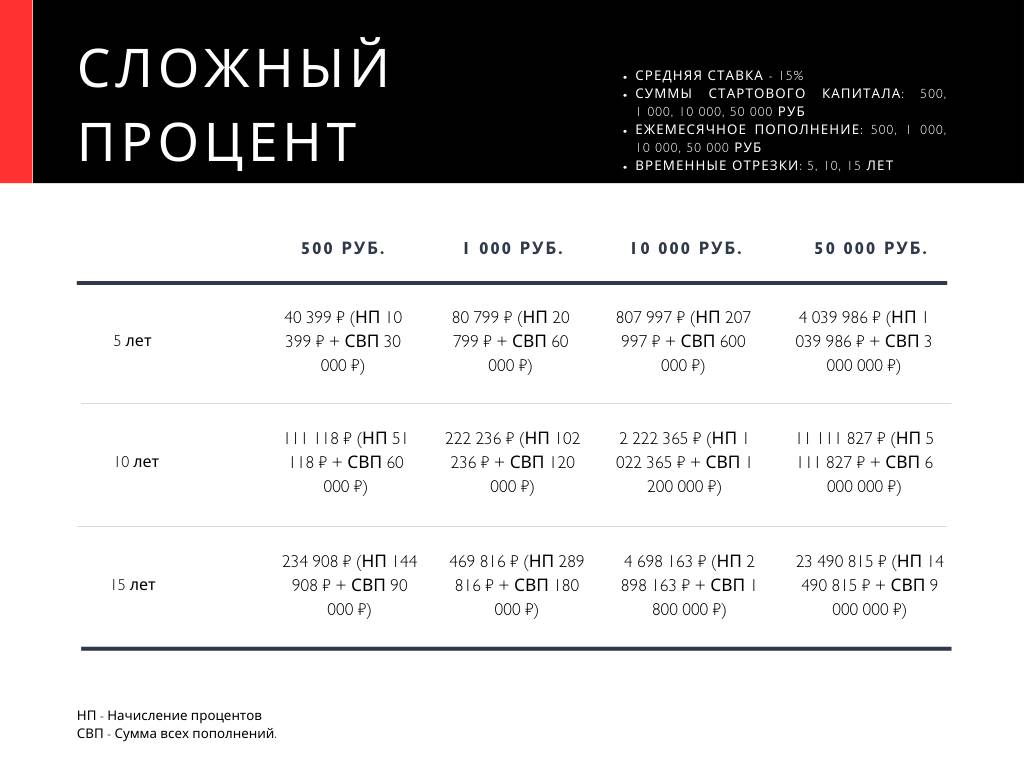Напоследок вспомним про инвестиции. Этот инструмент позволяет сформировать капитал, пусть не в кратчайшие сроки, но все же, и помочь достичь ваших финансовых целей. Процент здесь выше, чем в депозите. Нет необходимости кому-то возвращать средства и погашать проценты, как в случае с кредитом. Инвестиции также помогают самодисциплинироваться. И самое интересное – инвестировать можно начинать с любой суммы. Магия сложного процента на длительном отрезке времени сделает большую часть работы за вас.