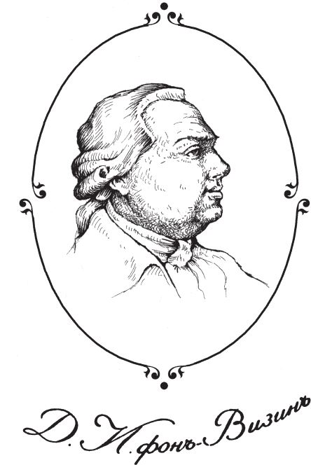 1Фонвизины по мужской линии происходили из древнего немецкого рыцарского рода. В Ливонской войне, во времена Иоанна Грозного, его предок Петр вместе со своими сыновьями был пленен русскими войсками и, по-видимому, попросился потом на русскую службу. Они получили земли и начали верой и правдой служить своей новой родине. Один из предков драматурга (кстати, тоже носящий имя Денис!) показал себя мужественным и неподкупным патриотом во времена Смуты. В царствование Алексея Михайловича Фонвизины приняли православную веру (до этого были «в немецкой вере», то есть лютеране-протестанты), а к восемнадцатому столетию окончательно обрусели. Но фамилию писали по-старинному, по-немецки – «фон-Визин», и еще сам Денис Иванович подписывал свое имя именно так. (В ХIХ веке такое написание некоторых уже будет коробить. Хорошо, например, известно, как Пушкин в письме отчитывал своего брата Льва. «Что ты из Фонвизина делаешь «нехриста», – ворчал великий поэт, – он – «из перерусских русской».)