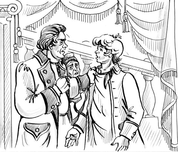 Скотинин. Митрофан! Ты теперь от смерти на волоску. Скажи всю правду; если б я греха не побоялся, я бы те, не говоря ещё ни слова, за ноги да об угол. Да не хочу губить души, не найдя виноватого.
