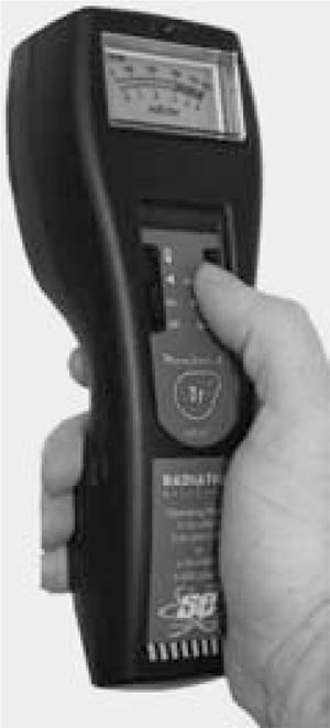 Универсальный детектор радиации 44ЕС (производства Montreal Biotech). Альфа-радиацию обнаруживает так же хорошо, как и все прочие ее виды. Работает от обычных батареек.