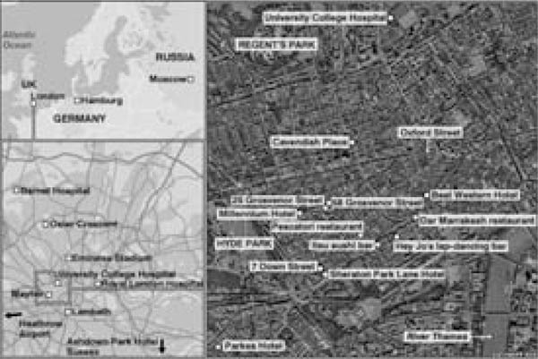 Другими словами, единственный реально существующий «полониевый след» несомненно тянется из Лондона в Москву (а также, скорее всего, в Италию, и, возможно, даже куда-либо еще). Но вот начинаются все эти следы в Лондоне.