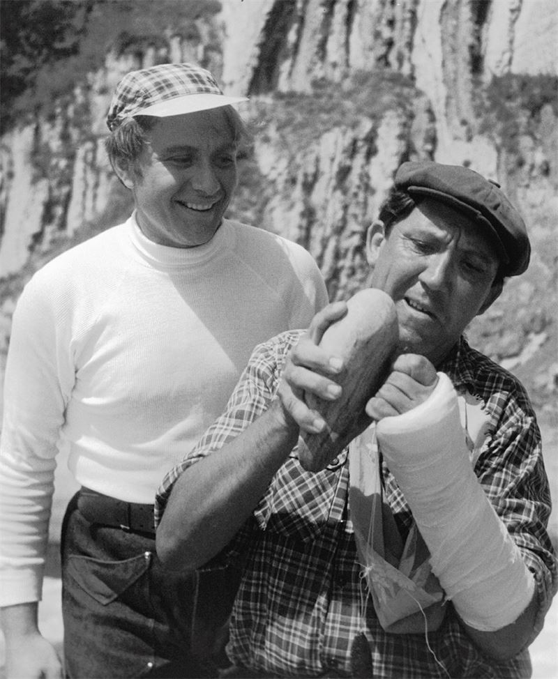 Он рассказывал и про другую трудную сцену: «Бывалов на пароходе “Севрюга” кричит в мегафон: “Наддай пару!” И клубы пара вылетали из переговорной трубки ему в лицо. Мы снимали эту сцену несколько раз и никак не могли добиться нужного эффекта. Тот, кто пускал пар, не понимал ритма комедии и не мог пустить его в нужный момент. Мы пробовали считать. На счет “раз, два, три” после команды Бывалова пар вылетал слишком поздно. На счет “раз, два” – тоже поздно. На счет “раз” – рано… Мы измучились. Тогда Ильинский, чтобы заполнить паузу и не потерять ритм, стал топать ногой, подавая знак для пускания пара. Это был восемнадцатый дубль».