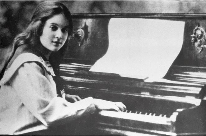 Юная Любовь Орлова за фортепиано во время занятий музыкой дома