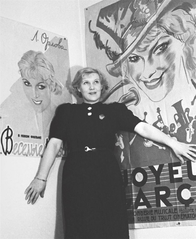 Любовь Орлова у афиши фильма «Веселые ребята»