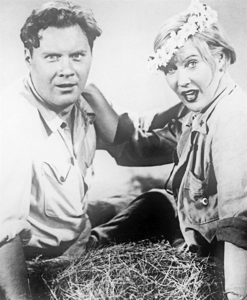 Кадр из фильма «Волга-Волга». Счетовод Алеша Трубышкин – Андрей Тутышкин, Дуня Смирнова (Стрелка) – Любовь Орлова