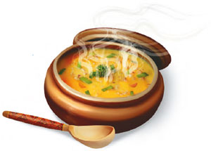 – Ну вот и ужин, – проговорила она и стала с расторопностью молодой гостеприимной хозяйки накрывать на стол. Всего пара минут и на зеленоватой скатерти стояли три глубокие глиняные тарелки, наполненные ароматным мясным бульоном.