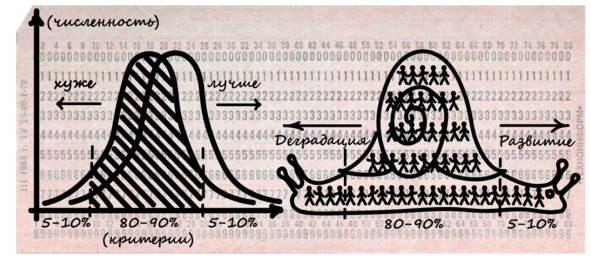 – Вот и отлично. Примечательно, – продолжал Психолог, – что границы заштрихованной области, куда вписывается среднестатистический человек, не являются статичными. Эта область вместе с границами может и должна изменяться в лучшую сторону.