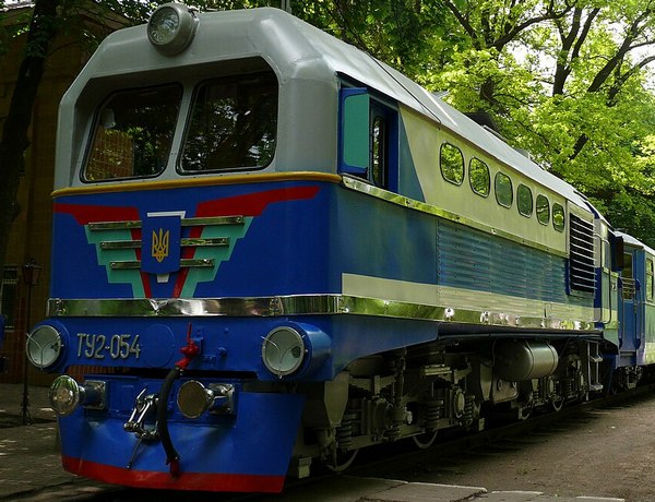 Всё то же самое, только тризуб на морду прилепили. А сам тепловоз, я уверен, тот самый, на котором я тогда, в 1978 году катался. А сделан он был ещё раньше, в пятидесятых годах.