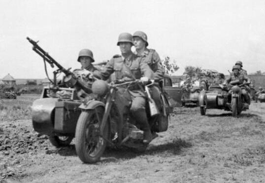 Немцы не спеша слезли со своих мотоциклов, и уже деловито, как у себя дома, прохаживались по двору.