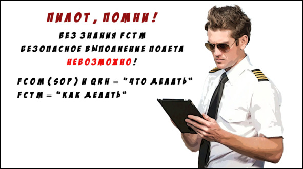 В авиакомпаниях страны существует единая, но очень грустная традиция, делать упор на чем угодно, а FCTM забрасывать на полку, как третьеочередной. Это ой-ой как плохо и совсем неправильно! Если SOP и QRH – это «что надо делать», то FCTM объясняет «как это сделать», плюс там еще много чего интересного, включая картинки. Невозможно научиться правильно и с пониманием выполнять процедуры SOP и QRH, не изучая параллельно FCTM!4