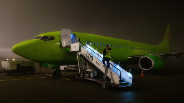 Не успели мы перевести дух, как к самолёту подъезжает трап, открывается дверь. В кабину забегает местный представитель S7 и, не тратя времени на расспросы и приветствия, скороговоркой сообщает: