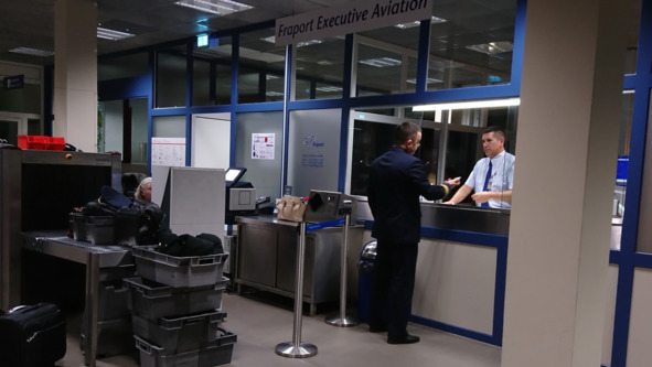 По-черепашьи объезжаем две взлётно-посадочные полосы, крадёмся по грузовому перрону. Наконец подъезжаем к небольшому зданию с надписью «Fraport Executive Aviation». И вот тут я вспоминаю, что местные служащие сразу же после заруливания забрали у нас последнюю генеральную декларацию, чтобы отвезти её полицаям в нормальный терминал. Других копий у нас нет, как нет у меня шенгенской визы в паспорте.
